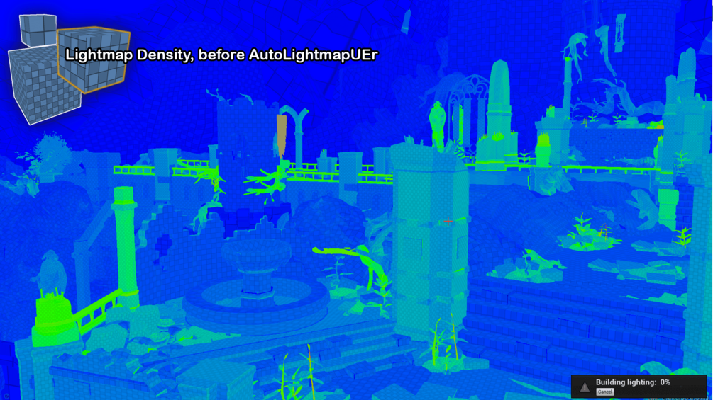 AutoLightmapUEr is an Unreal Engine editor plugin that allows you to easily enforce consistency of lightmap density across your level, saving precious memory and reducing lighting build times.